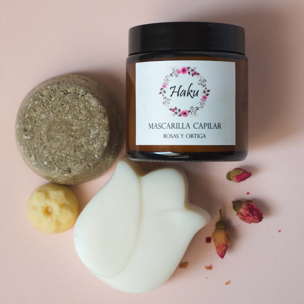 Presentación: 2 pastillas sólidas, 75gr cada una, envueltas en papel, y el acondicionador en film biodegradable. Pastilla de sérum en pote plástico. Mascarilla capilar en pote de vidrio de 100cc.